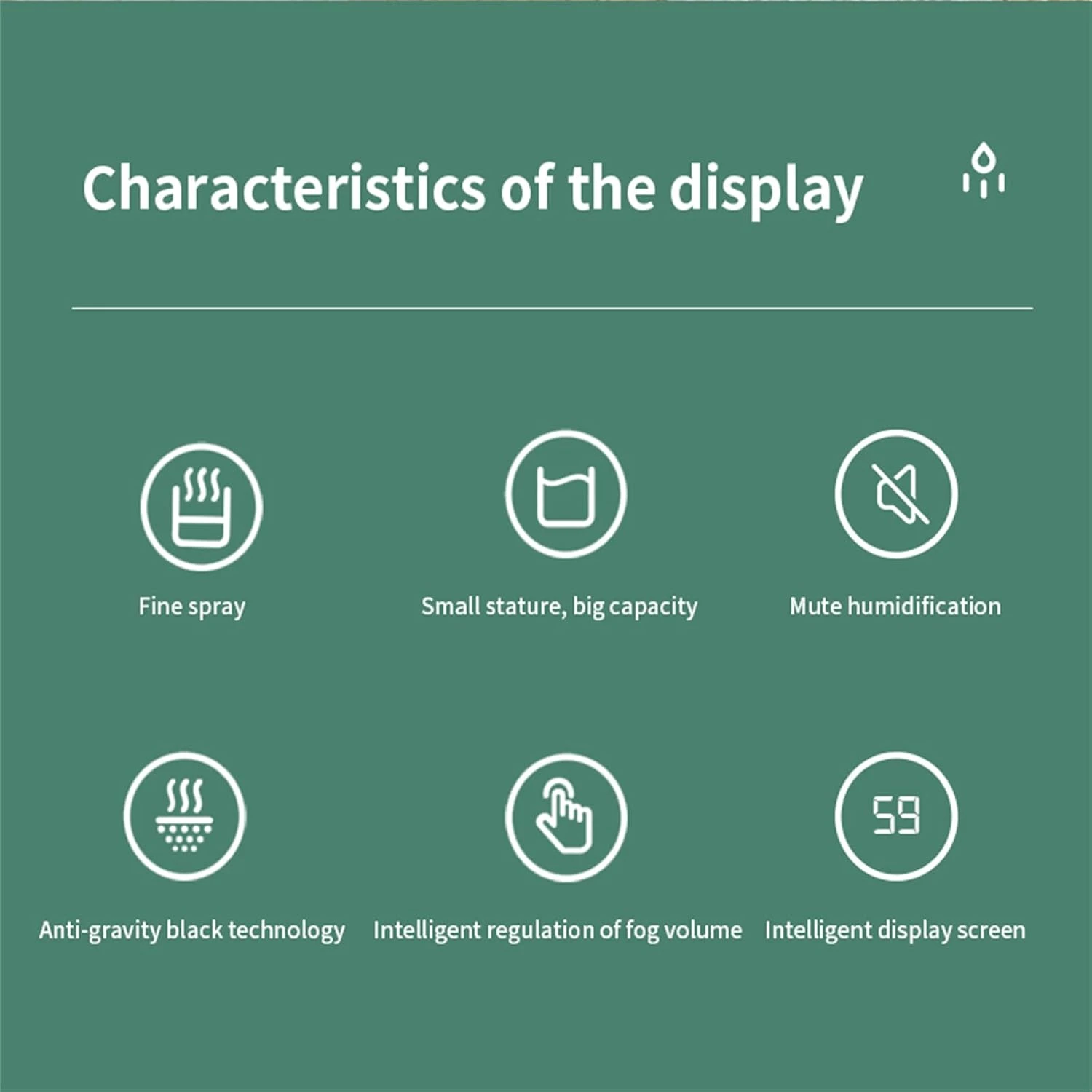 - Ovaj inovativni dizajn ide dalje od jednostavnog ovlaživanja zraka korištenjem funkcije lebdećih kapljica vode za pružanje dodatnog efekta.