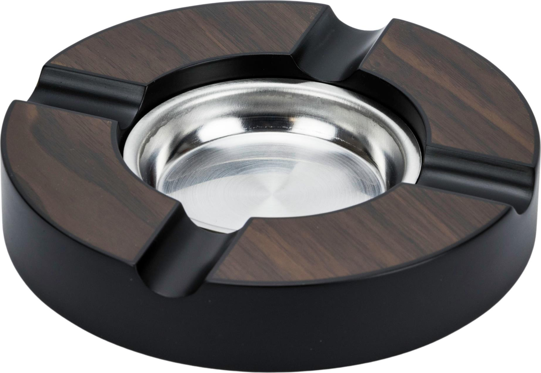 Ovaj elegantni pepeljara za cigare s okruglim oblikom u matiranoj orahovoj završnoj obradi pruža sofisticirani izgled Vašem prostoru. S četiri odmorišta za cigare, savršen je za dijeljenje užitka sa prijateljima ili za osobno opuštanje. Visina od 3 cm i promjer od 16 cm čine ga kompaktnim i praktičnim, dok metalna umetnica osigurava dugotrajan i jednostavan način čišćenja.