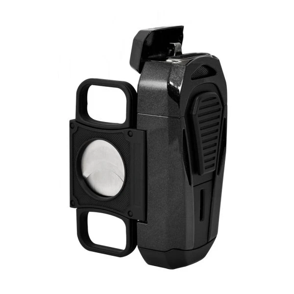 Bossov integrirani rezač brzo reže vrh na cigari svojim fino izbrušenim dvostrukim oštricama od nehrđajućeg čelika. Zatim, robusni trostruki plamen bez napora pali vašu cigaru. Ovo je početak dobro provedenog vremena dok rukujete svojom cigarom kao Boss.