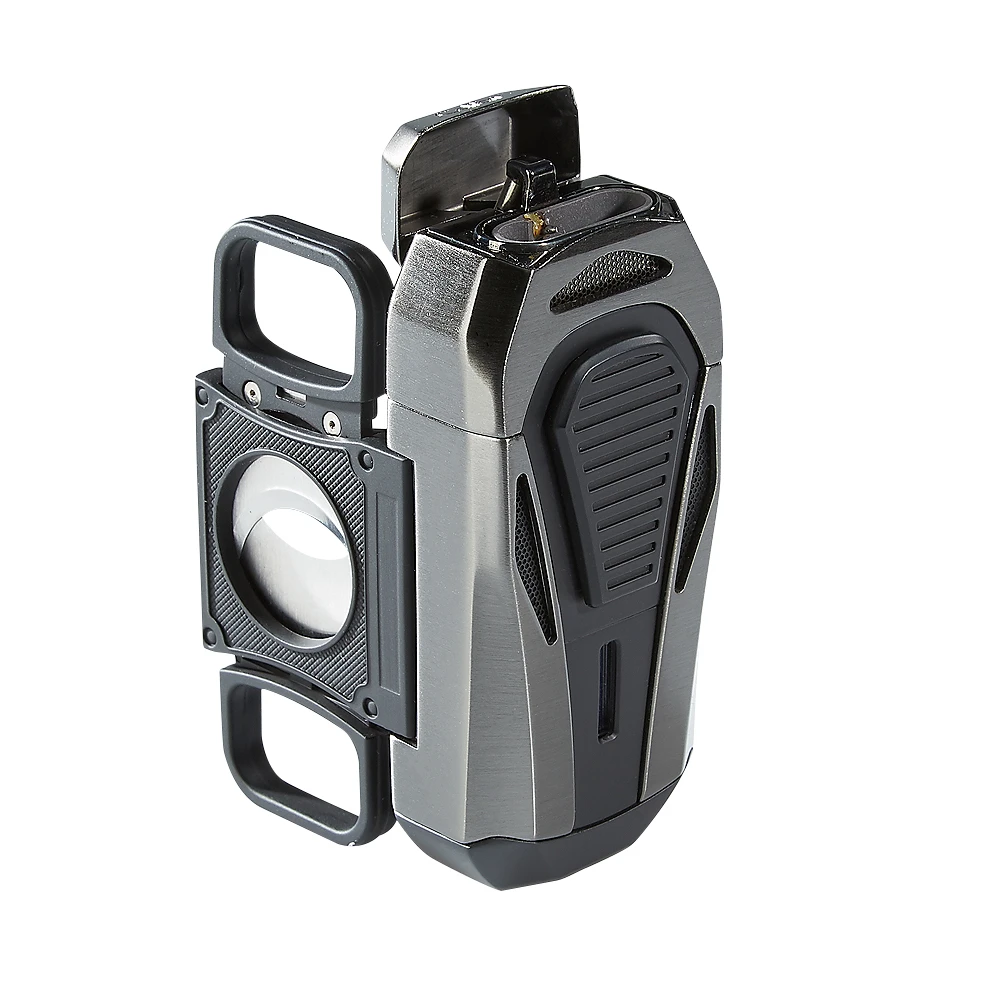 Bossov integrirani rezač brzo reže vrh na cigari svojim fino izbrušenim dvostrukim oštricama od nehrđajućeg čelika. Zatim, robusni trostruki plamen bez napora pali vašu cigaru. Ovo je početak dobro provedenog vremena dok rukujete svojom cigarom kao Boss.