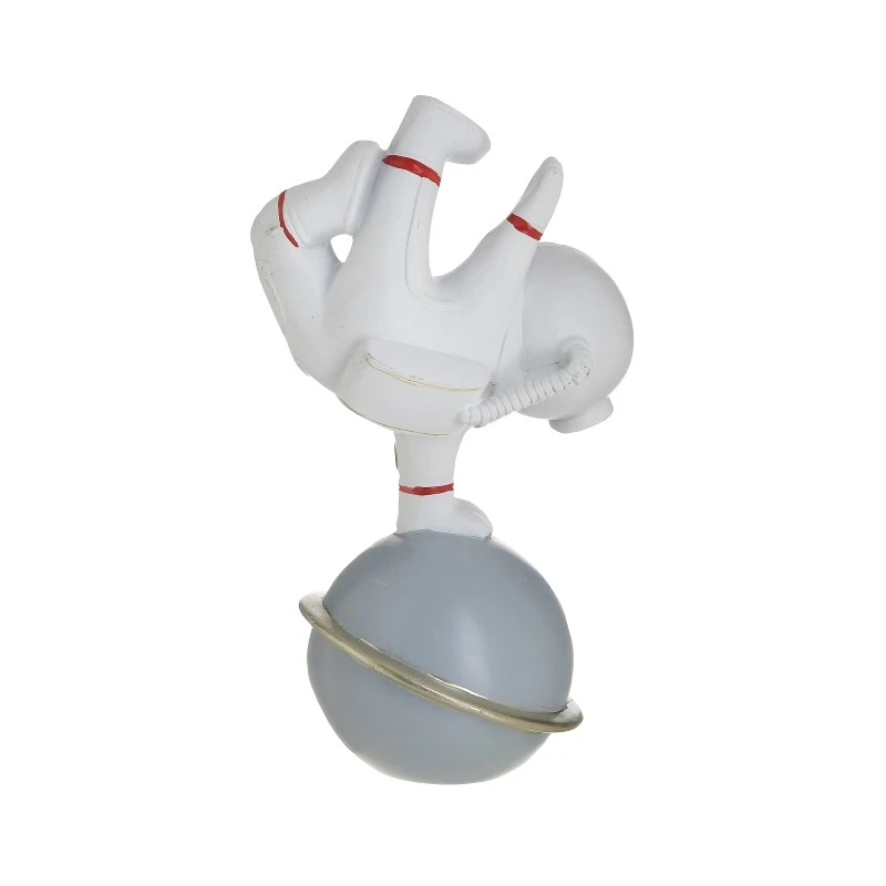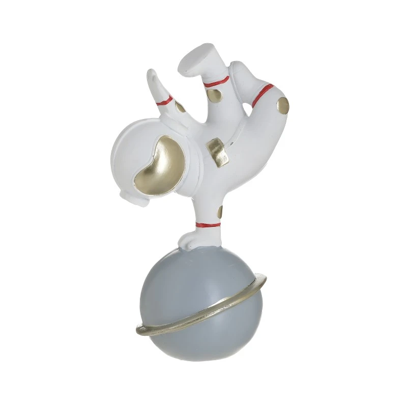 Ova dekorativna figura astronauta izrađena je od kvalitetnog poliresina i odiše razigranošću, simbolikom i elegancijom. Moderan stil s decentnim zlatnim detaljima i suptilnim crvenim akcentima čini je upečatljivim, ali nenametljivim dodatkom svakom prostoru.
