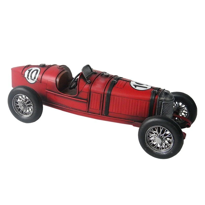 Unesite dašak retro šarma u svoj prostor s ovim prekrasnim vintage stojećim crvenim trkaćim autom. Ovaj model, izrađen od čvrstog željeza, savršeno će se uklopiti u svaki interijer, dodajući mu jedinstvenu notu stila.