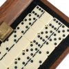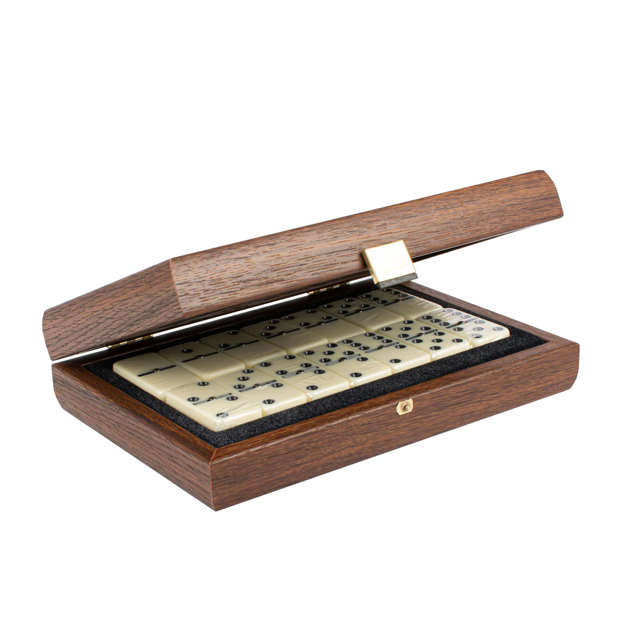 Unesite sofisticiranost u svoju kolekciju igara uz naš ručno rađeni domino set, smješten u elegantnu torbicu od smeđe noj kože i upotpunjen prelijepo izrađenom drvenom kutijom. Dizajniran za one koji cijene vrhunske i luksuzne setove društvenih igara, ovaj domino set je savršen dodatak svakom luksuznom prostoru za igru ili dnevnoj sobi.