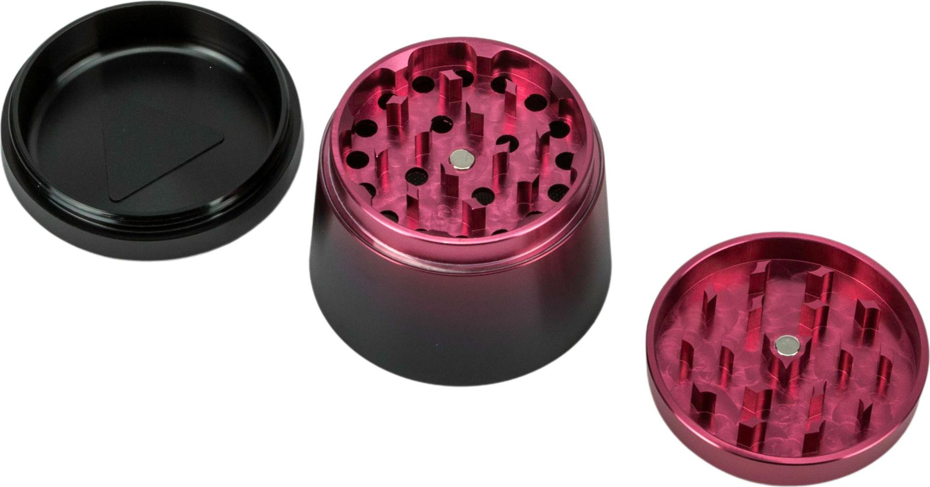 Drobilica metalna konusna crveno/crna 3-dijelna Ø53-62mm/H56mm s sitom i strugačem dolazi u elegantnoj pojedinačnoj kutiji. Izrađena je od visokokvalitetnog metala i nudi efikasno mljevenje duhana zahvaljujući svom konusnom dizajnu. Crveno-crna boja daje ovoj drobilici moderni i upečatljivi izgled, dok tri dijela, uključujući sito i strugač, omogućavaju precizno mljevenje i odvajanje sitnih čestica. Savršena je za ljubitelje duhana koji cijene dugovječnost i funkcionalnost u svakom detalju.