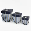 Tijelo kutije krase uspravne pruge u kombinaciji plave, zlatne, crne i bijele boje, što joj daje dinamičan i otmjen dizajn. Sa strane se nalazi čvrsta pletena ručka koja olakšava nošenje i upotpunjuje ukupan estetski dojam.