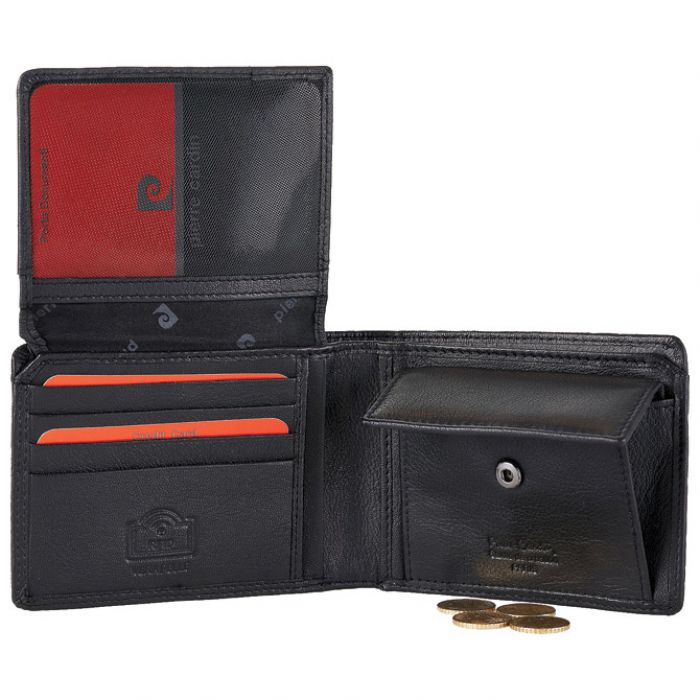 Muški novčanik Pierre Cardin, prava koža. Utisnuti logo, novčanik za kovanice s kopčom, utor za kartice, utor za novčanice, pretinac s preklopom, kutija uključena.