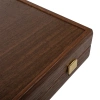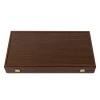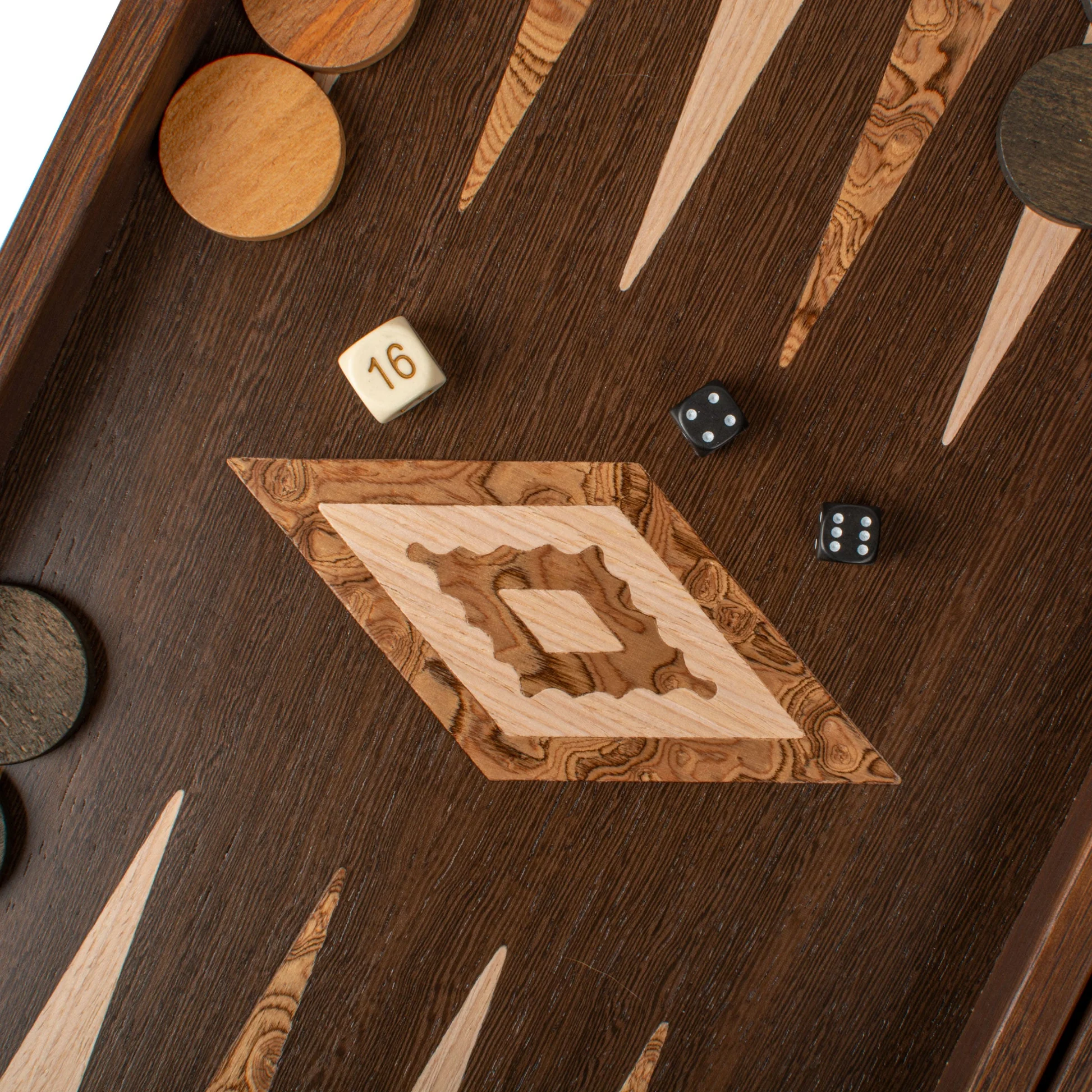 Jedinstveni furnir od orahovog burla osigurava da je svaka tabla za igru potpuno jedinstvena. Ručno izrađeni backgammon set od wengea i orahovog burla sadrži igralište izrađeno tehnikom intarzije, gdje se komadi furnira precizno uklapaju kako bi se formirali dekorativni uzorci i elegantni detalji. Ova tehnika naglašava prirodnu ljepotu drveta, čineći svaki primjerak posebnim umjetničkim djelom.