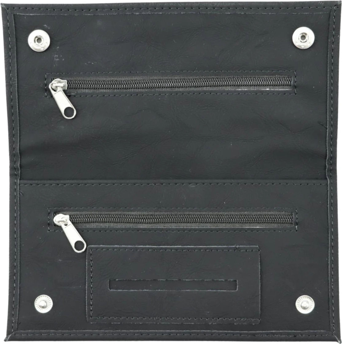 Ova crna futrola za duhan izrađena je od meke umjetne kože i dizajnirana je za sigurnost i praktičnost. Sa dimenzijama 18 cm, pruža dovoljno prostora za pohranu duhana i drugih potrebnih stvari. Opremljena je patentnim zatvaračem na zadnjoj strani, a zaseban podstavljeni pretinac s dodatnim zatvaračem omogućava organizovano skladištenje. Velika podstavljena unutrašnja polica pruža sigurno i sigurno odlaganje duhana. Savršen odabir za one koji žele elegantan i funkcionalan dodatak za svakodnevnu upotrebu.
