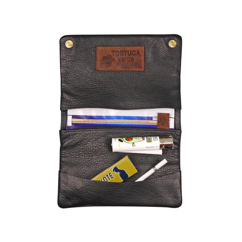 Nove torbice za duhan brenda Tortuga verde izrađene su od kože, robusnog i izdržljivog materijala, što ih čini bezvremenskim proizvodom. Osim duhana, unutra ima mjesta za papiriće za cigarete i filtere, a magnetski držač sigurno drži upaljač. Svi proizvodi Tortuga verde dijele cilj usmjerenosti na održivost i ekološku osviještenost, slijedeći moto: “Svaki korak u pravom smjeru je važan.”