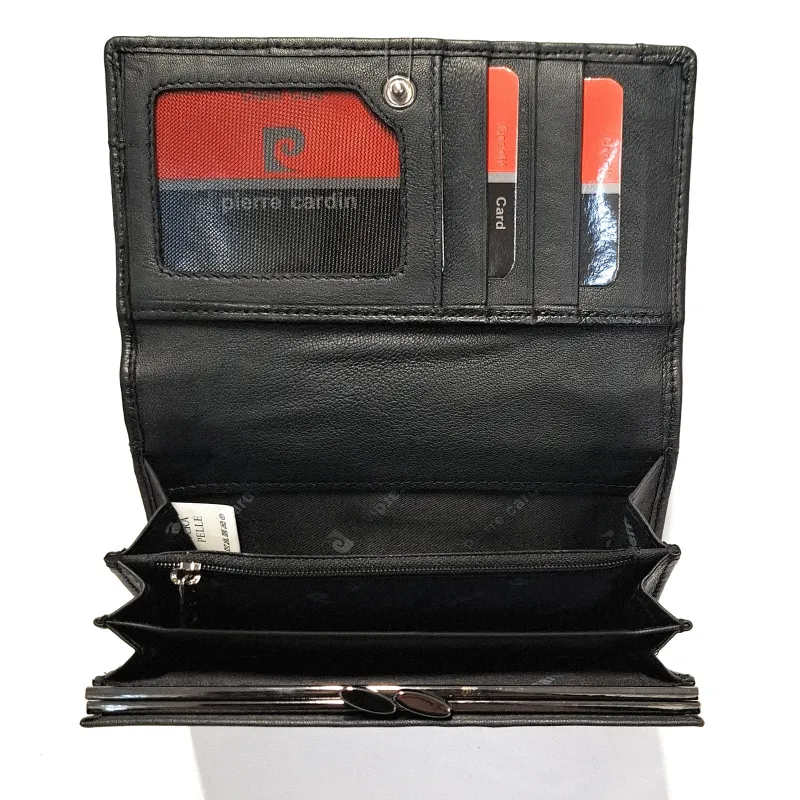 Novčanik izrađen od mekane, kvalitetne kože, kompaktan i praktičan za svakodnevnu upotrebu. Zatvara se sigurnim dugmetom i nudi funkcionalan raspored unutrašnjosti: više utora za kreditne kartice, poseban džep za kovanice sa patentnim zatvaračem, tri odvojena pretinca za novčanice i dokumente, kao i dodatni unutrašnji džep sa patentnim zatvaračem. Na prednjoj strani nalazi se diskretan logo, dok RFID zaštita pruža sigurnost vaših kartica od neovlaštenog očitavanja.