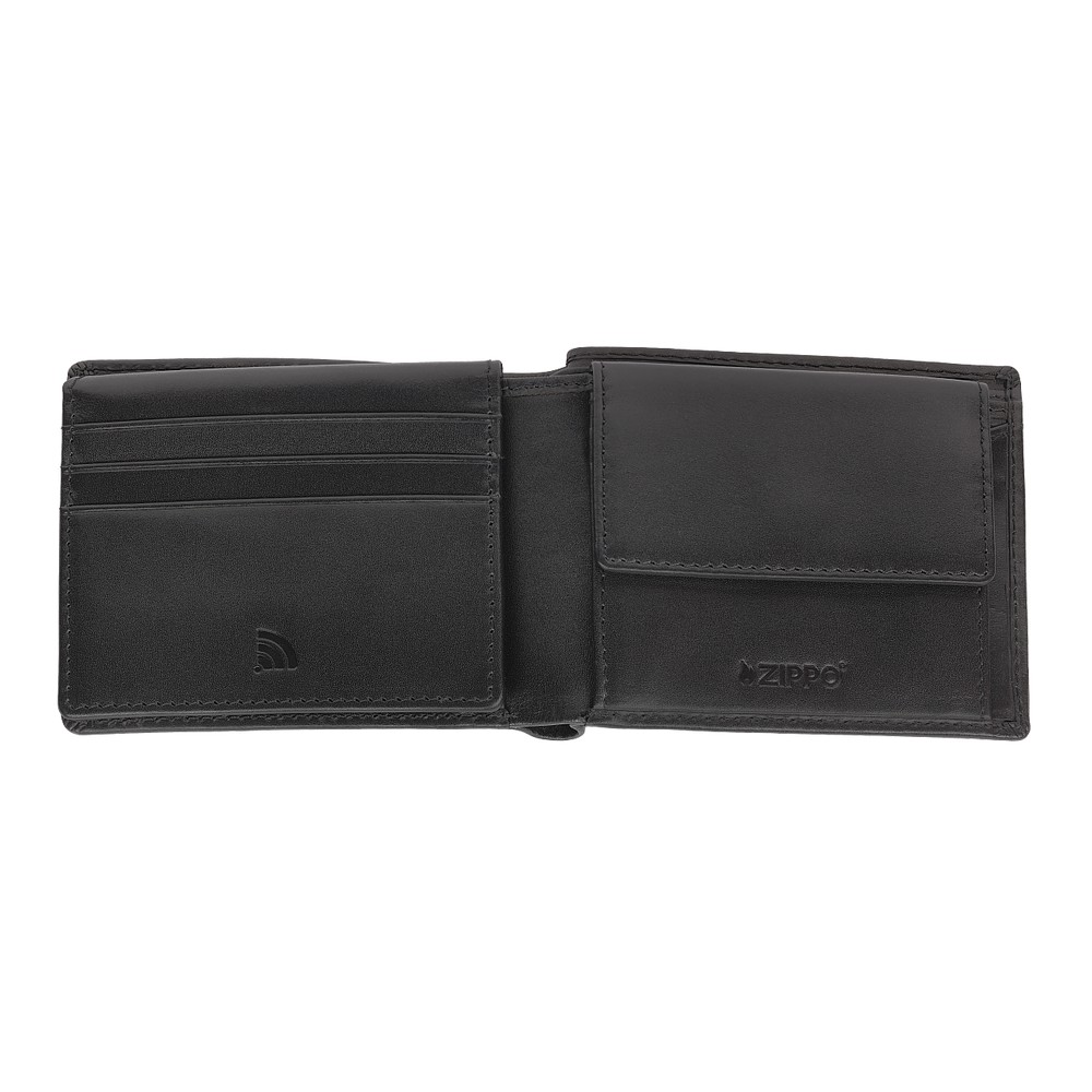 Dodajte klasičan stil vašim svakodnevnim osnovnim stvarima s ovim Signature novčanikom od Zippo, koji dolazi s ugrađenom pregradom za kovanice. S dovoljno prostora za novčanice, kovanice i kreditne kartice, novčanik od prave goveđe kože odlikuje se metalnim Zippo plamenom, RFID zaštitom i luksuznom jacquard podstavom.