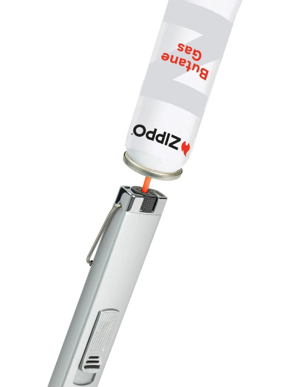 Ovaj proizvod je namijenjen za sve punjive butanske upaljače. Koristite SAMO Zippo benzin za upaljače s upaljačima otpornim na vjetar i punjivim grijačima za ruke.