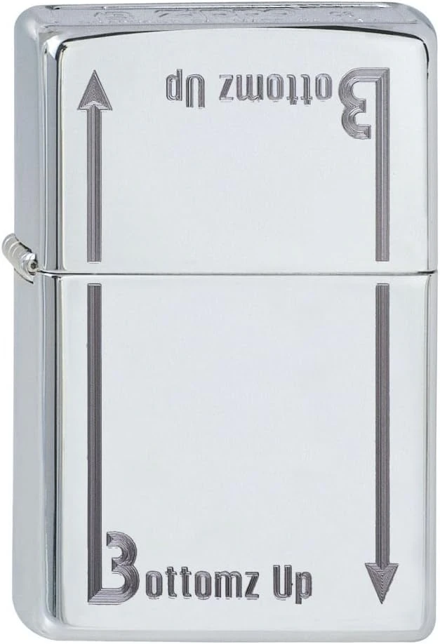 Zippo Bottomz Up visokopolirani hromirani upaljač u klasičnom stilu, otporan na vjetar dolazi u ekološki prihvatljivoj kutiji i ima doživotnu garanciju. Zippo Bottomz Up upaljač je najbolji ako se napuni Zippo premium tekućinom za upaljače. Zippo High Polish Bottomz Up upaljač će osvijetliti vaš svijet; samo pričekajte i vidjet ćete.