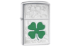 Ovaj upaljač od visoko poliranog kroma krasi prekrasan graavirani dizajn i slika djeteline s četiri lista.