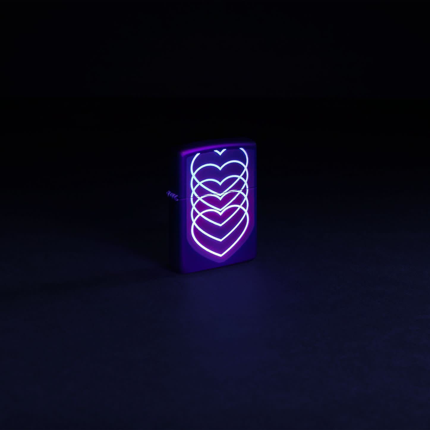 Zračite ljubavlju gdje god da krenete s ovim snažnim crnim mat upaljačem. Svijetleće srce emitira svoju snagu u minimalističkom dizajnu Color Image, koji sija pod ultraljubičastim svjetlom zahvaljujući našem Black Light procesu. Dolazi upakovan u poklon kutiji. Za optimalne performanse, napunite Zippo gorivom za upaljače.