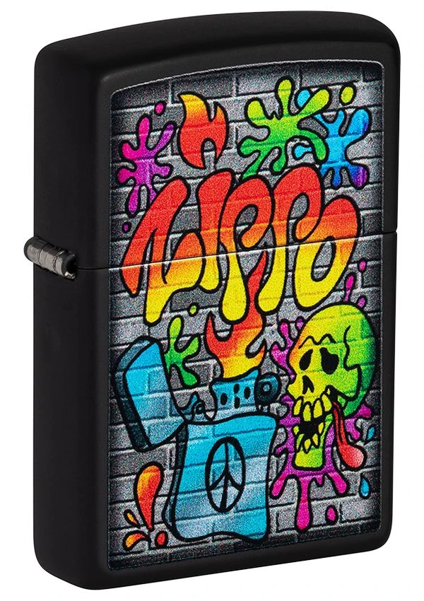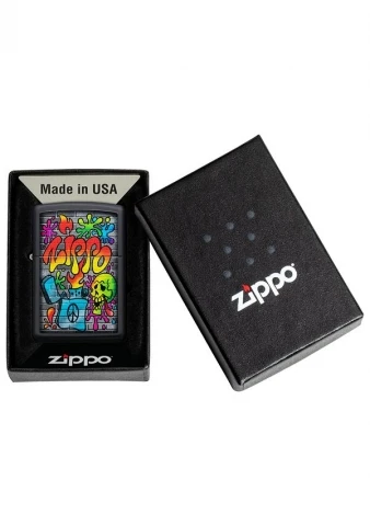 Uzmite dio ulične umjetnosti sa sobom uz ovaj upečatljivi Zippo Street Art dizajn na klasičnoj Black Matte podlozi. Motiv je kreiran tehnikom Color Image i prikazuje živopisnu Zippo grafit ilustraciju na teksturi kamenog zida.