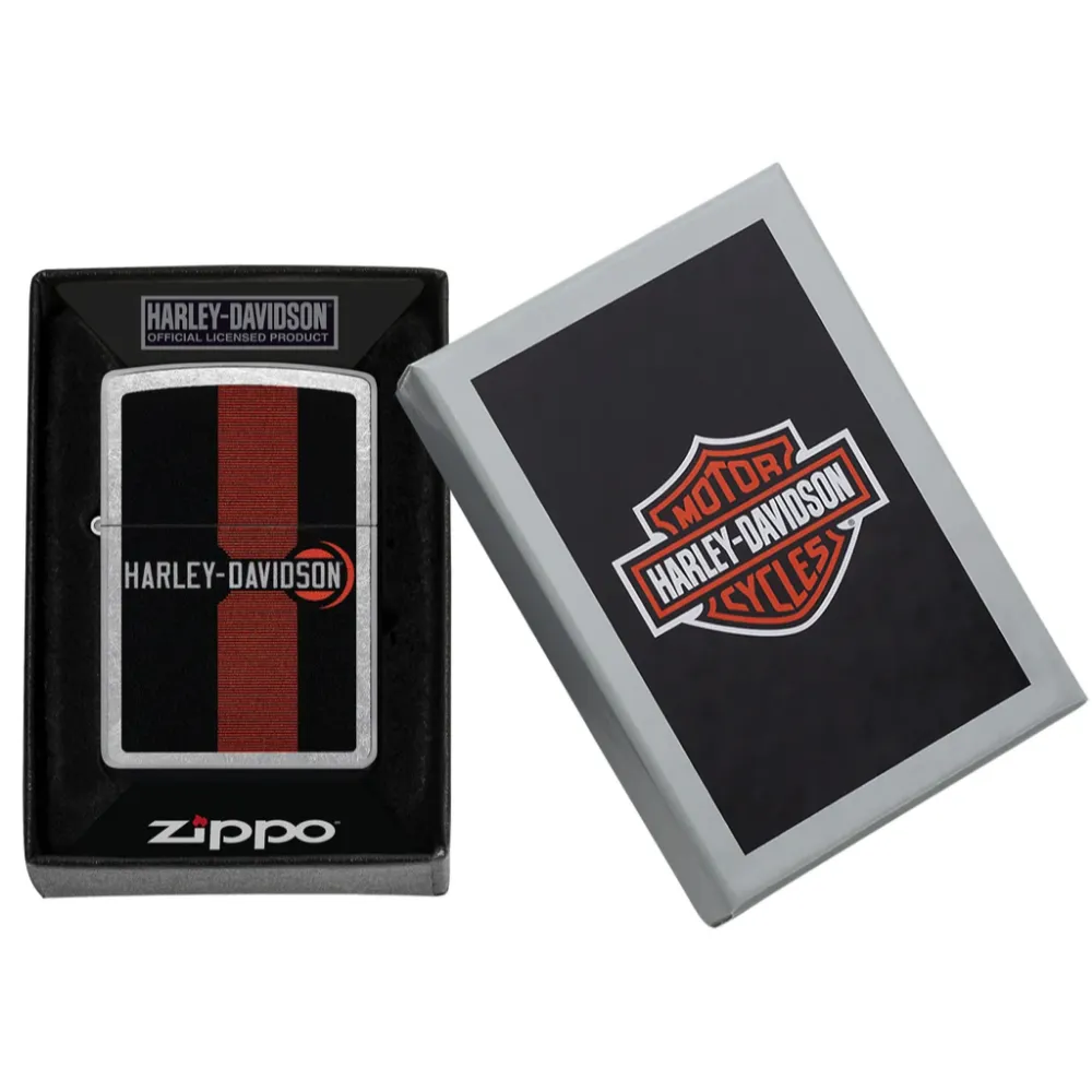 Snažne trkaće pruge i legendarni Harley-Davidson logo dominiraju ovim Color Image dizajnom, savršeno uklopljenim na klasični Street Chrome Zippo upaljač. Stil koji odiše slobodom, brzinom i kultnim moto naslijeđem čini ovaj model idealnim izborom za ljubitelje Harley kulture i kolekcionare Zippo upaljača.