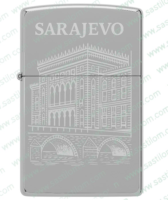 Ovaj ekskluzivni Zippo upaljač izrađen je od visoko poliranog kroma i ukrašen detaljnom gravurom istorijske sarajevske Vijećnice. Crtež se pruža preko cijele prednje površine upaljača, uključujući gornji i donji dio, stvarajući impresivan vizualni dojam i izuzetno elegantan završetak. Precizna mat gravura savršeno se ističe na sjajnoj chrome podlozi, čineći ovaj model jedinstvenim kolekcionarskim komadom.