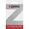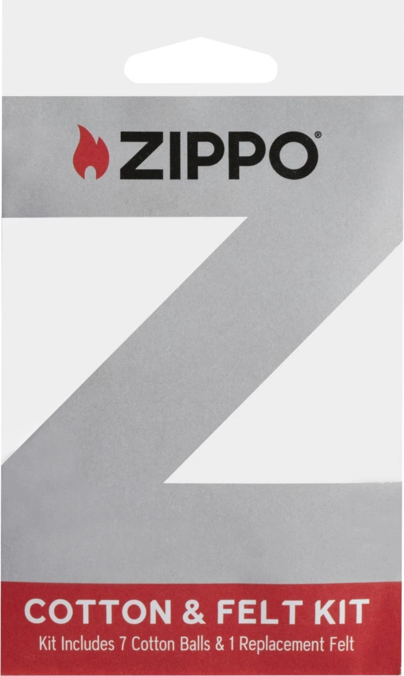 Zippo Cotton and Felt Replacement Kit omogućava održavanje Zippo benzinskih upaljača u optimalnom stanju. Set sadrži dovoljno upijajućeg pamuka za jedan rezervoar goriva i zamjensku filc podlogu. Namijenjen je isključivo za originalne Zippo windproof upaljače (nije kompatibilan sa Slim® modelima).